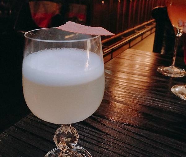 特別的是上面那片看起來很像煙燻肉片的東西,聽bartender說是用番茄泥製成的,搭配酒類一起吃,居然會有肉乾的味道呢,這杯酒層次很足,是會想再點好幾次的調酒呢。